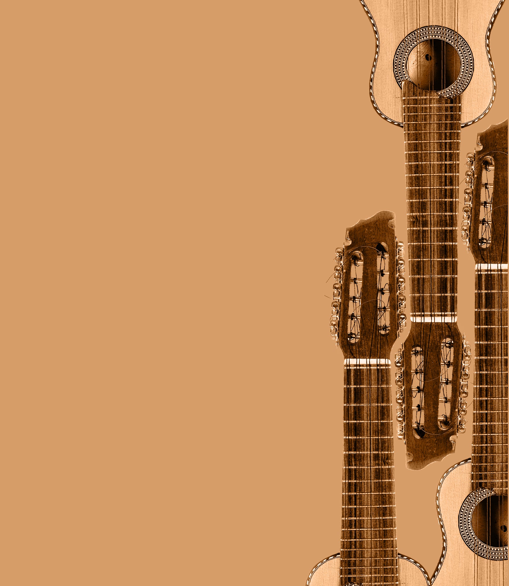 The Advanced Steel String Guitar features a vintage Martin D28 Steel-String Guitar, with a rich, modern, and bright sound: the true sound of a flat top guitar. The Advanced Mandolin is a 200-year-old vintage Italian Mandolin in pristine condition. The Guitale (also known as Kiku) is a unique, custom-made cross between a classical 6-string nylon guitar and a baritone ukulele. Finally, the Charango is a South American lute with a rich history. With a smaller body and 5 pairs of strings, it has a rich and deep sound: slightly metallic, but light and nimble.